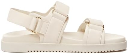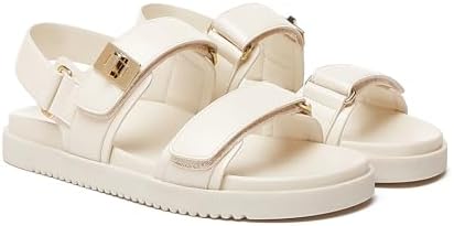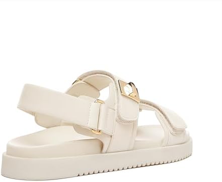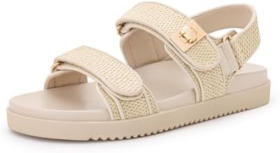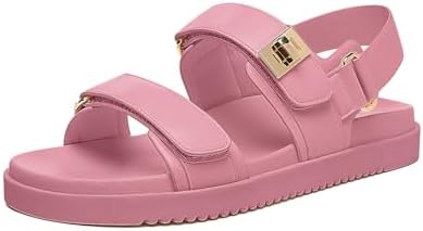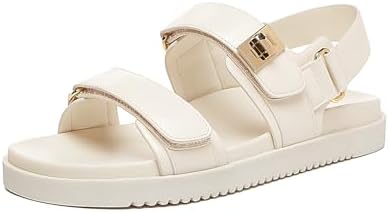 Rihero Women’s Adjustable Double Strap Flat Sandals | Comfortable Leather Footbed for Everyday Use | Stylish Slip-On Des